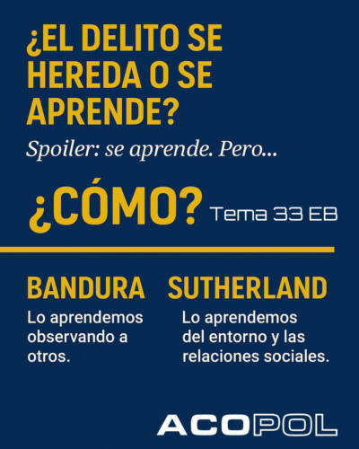 Cada vez es más frecuente que en los exámenes tipo test aparezcan preguntas comparando teorías del delito. Entender la diferencia entre Bandura y Sutherland te ayudará no solo a acertar preguntas concretas, sino a comprender mejor cómo se estructura el pensamiento criminológico actual.