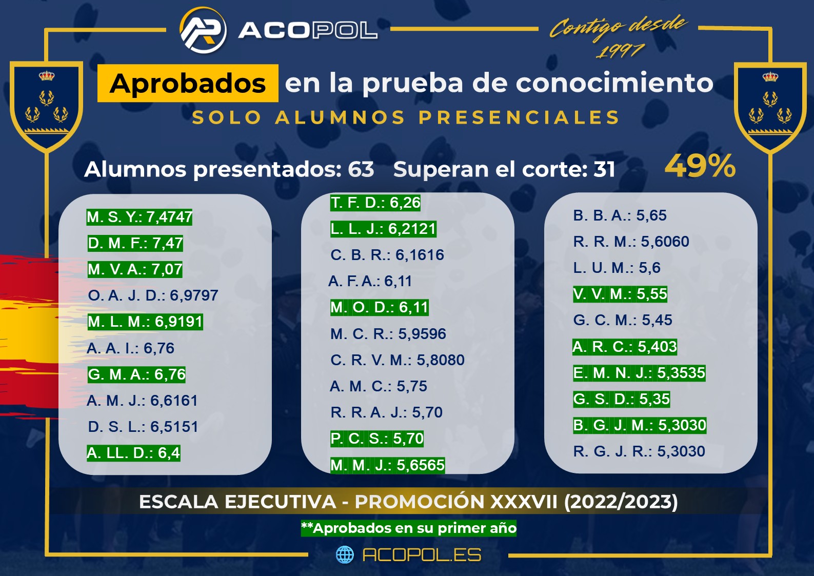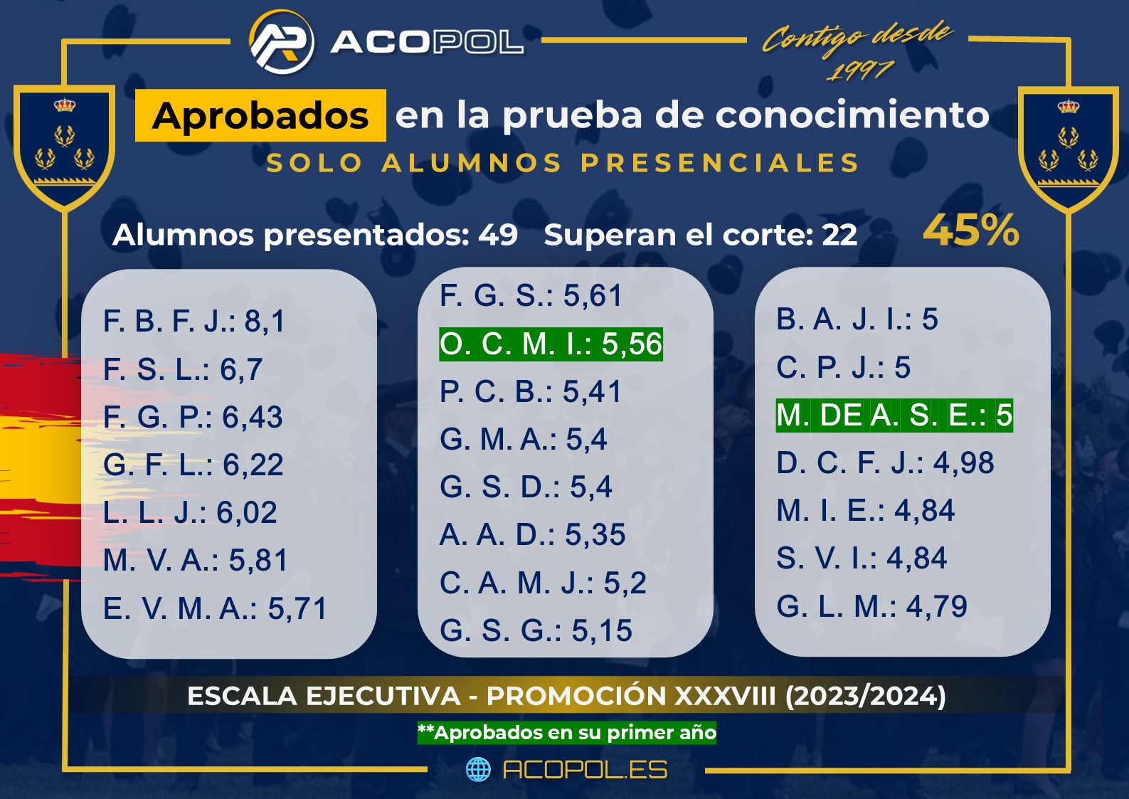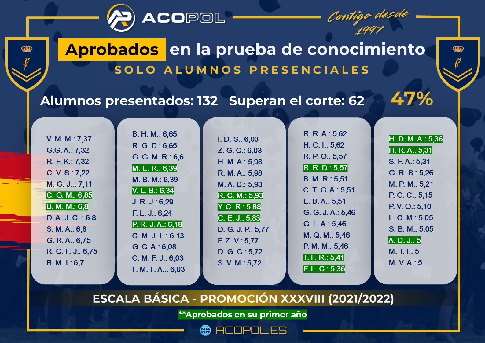 En ACOPOL publicamos los resultados de nuestras promociones con un objetivo muy claro: transparencia, seguimiento y mejora continua. Aquí podrás consultar, de forma organizada, los resultados obtenidos por nuestros alumnos en las distintas convocatorias de Escala Básica y Escala Ejecutiva de la Policía Nacional.